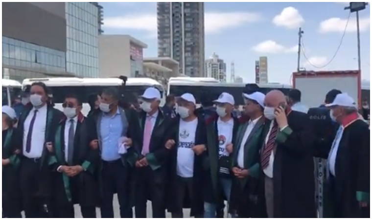 Türkiye’nin dört bir yanından başlattıkları Savunma Yürüyüşü’nün ardından Ankara’da buluşan baro başkanlarına engelleme ikinci gününde de sürüyor. Ankara girişine durdurulan avukatlara yönelik abluka gece boyunca devam ederken TBB Başkanı Metin Feyziyoğlu 27 saat sonra alana geldi. Ancak baro başkanları Feyziyoğlu’nun alana girmesine izin vermedi.