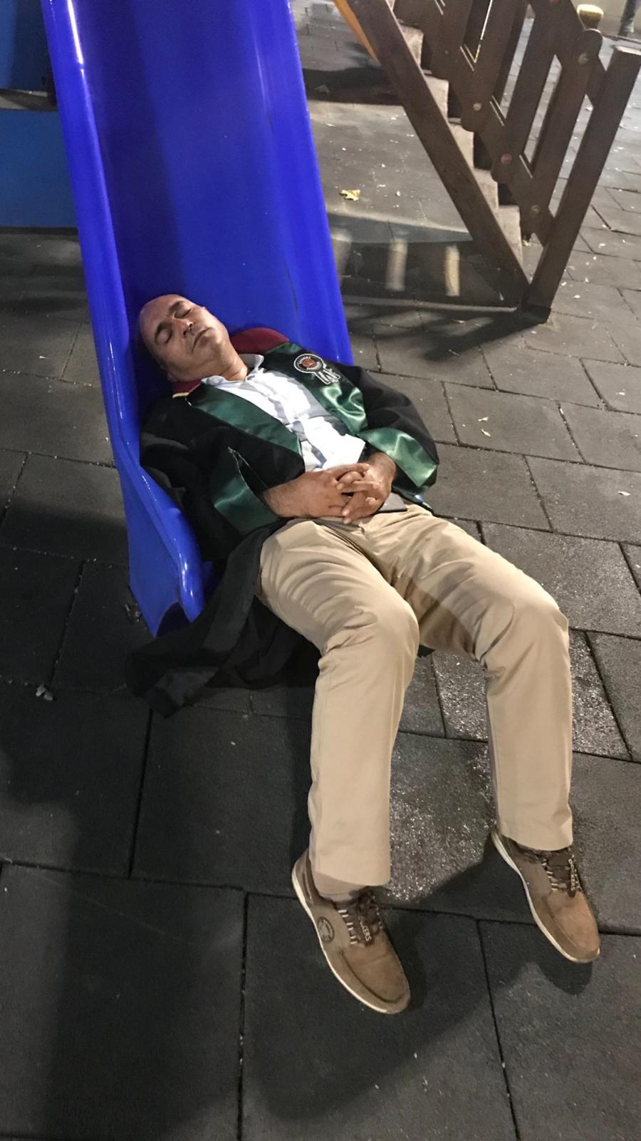 Bu resimde uyuyan kişiler Gaziantep Baro Başkanı @avbektas İzmir Baro Başkanı @avozkanyucel İstanbul Baro Başkanı @DURAKOGLU2016.. Bu resimde uyuyan kişiler; savunmanın geleceği için her hukuksuzluğa, zorbalığa rağmen mücadele eden, onurlu, vicdanı hür insanlar. #SavunmaAnkaraya pic.twitter.com/Alz54RZpMn