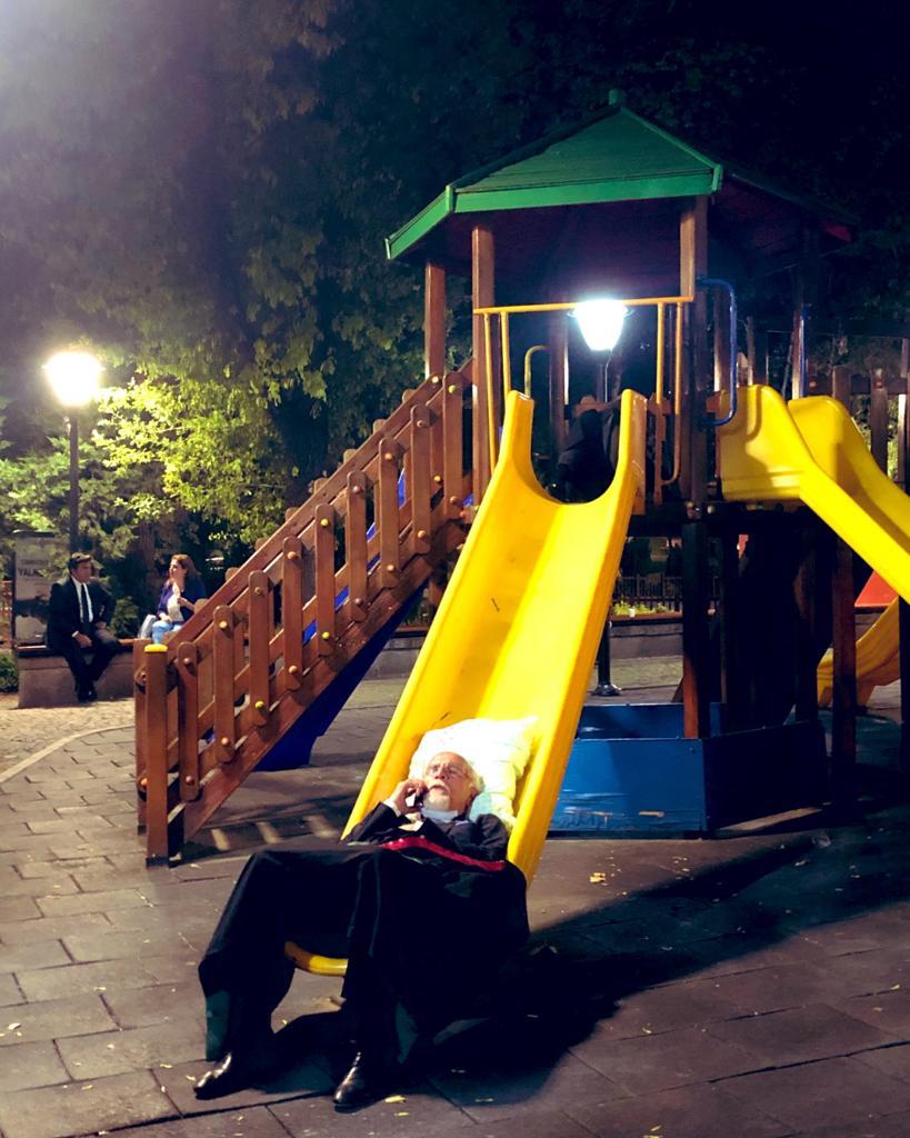 Baro başkanlarının gece geç saatlerde bir çocuk parkında dinlenirken çekilen fotoğrafları sosyal medyada gündem oldu.