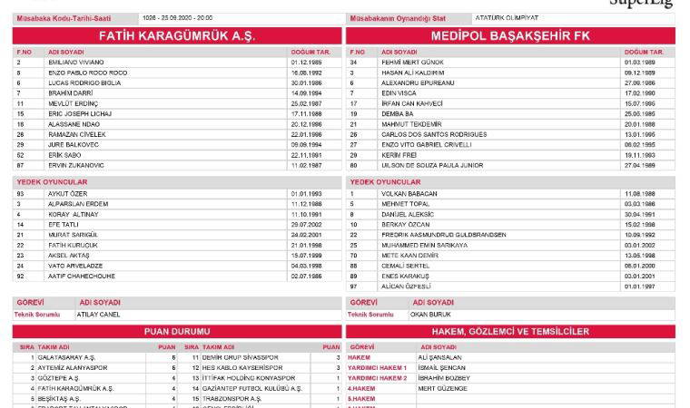 Süper Lig’in 3. haftasında Fatih Karagümrük ile M.Başakşehir, Atatürk Olimpiyat Stadı’nda karşı karşıya gelirken, bu zorlu karşılaşmada son şampiyon Başakşehir’i yakından ilgilendiren ilginç bir olay yaşandı. TFF’nin her müsabakada olduğu gibi bu maçta da hazırladığı müsabaka isim listesinin içinde bulunan puan durumu kısmında Başakşehir’in ismi yer almadı. Söz konusu tabloda, lig 20 takım üzerinden verildi ve puanı olmayan son sıradaki turuncu-lacivertli takım, bir nevi bu bölümde kesik yedi.