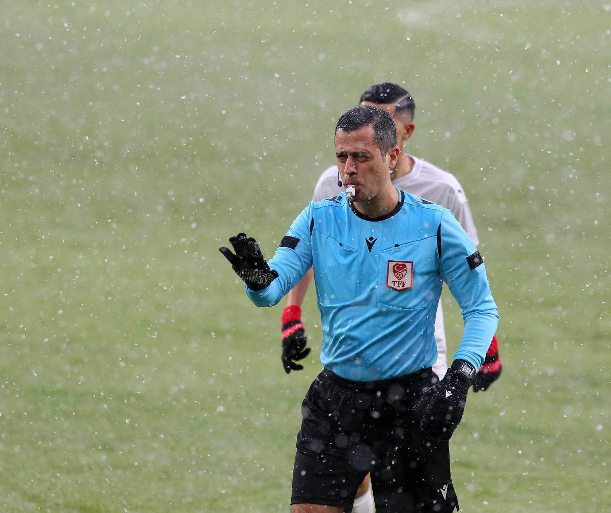 4’üncü dakikada maçın hakemi Alper Ulusoy, yoğun kar yağışı nedeniyle kış topuyla (Turuncu top) oyuna devam edilmesini istedi.