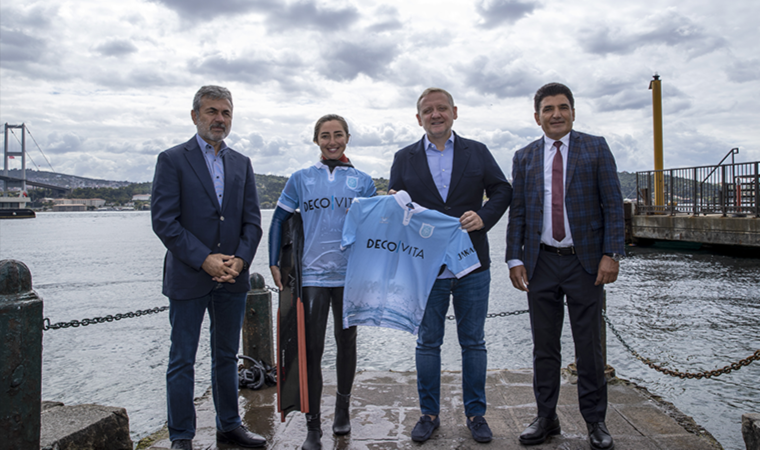 Başakşehir Teknik Direktörü Aykut Kocaman'ın da yer aldığı organizasyonda Boğaz'a dalış yapan Şahika Ercümen, Başakşehir'in alternatif formasıyla su altında görüntü verdi.
