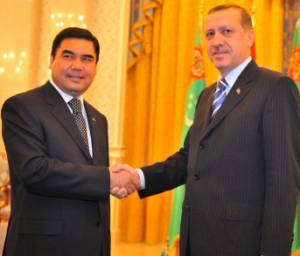 Türkmenistan Devlet Başkanı Gurbangulu Berdimuhamedov'un davetlisi olarak Türkmenistan'a giden Başbakan Recep Tayyip Erdoğan, Berdimuhamedov tarafından kabul edildi.