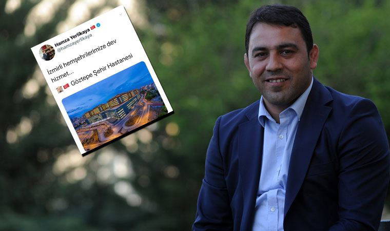 Hamza Yerlikaya'nın İstanbul'da açılan hastane için yaptığı paylaşımda “İzmirli hemşehrilerimize dev hizmet. Göztepe Şehir Hastanesi” ifadeleri yer aldı.