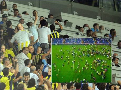 Fenerbahçe Asbaşkanı Ali Koç da taraftarları sakinleştirmek için sahaya girerken anonsları da dinlemeyen taraftarlar sahaya akın etti. Saha bir anda taraftarlarca doldurulurken karşılaşmanın hakemleri soyunma odasının yolunu tuttu.