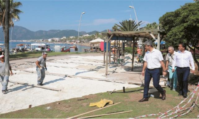 Marmaris Belediye Başkanı Mehmet Oktay, sahilde bulunan Türkmenistan Parkı ile yapımı devam etmekte olan park çalışmalarını yerinde inceledi.