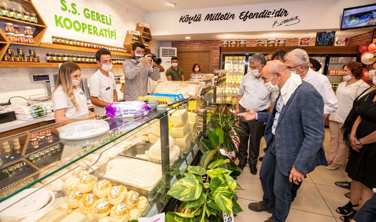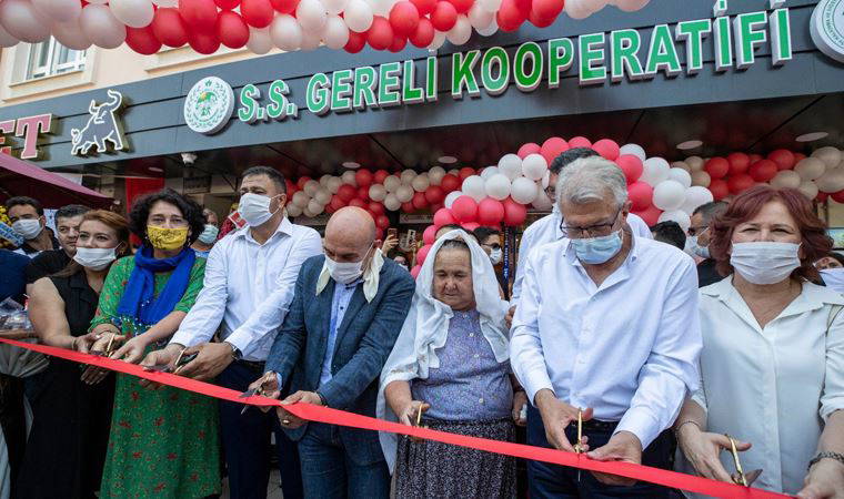 Gereli Tarımsal Kalkınma Kooperatifi Başkanı Mustafa Gerçek 2005 yılında 60 ortakla yola çıkan kooperatifin bugün 235 ortakla yola devam ettiğini belirterek kırsalda kalkınma hamlesi başlatarak kooperatiflere destek olan İzmir Büyükşehir Belediye Başkanı Tunç Soyer’e ve İzmir Köy-Koop çatısı altında İzmir Köy–Koop Birlik Başkanı Neptün Soyer’in yol göstericiliğine teşekkür etti. Gerçek, tarım ve hayvancılığın başkenti Ödemiş’te ortalama 40 ton süt toplarken 2018 yılından itibaren süt işleyen konuma geldiklerini, peynir üretimine başladıklarını, hem kooperatifin ürünlerini hem de diğer üretici kooperatiflerinin ürünlerini vitrine çıkardıkları ürün satış yerinin ikinci şubesini açmanın gururunu yaşadıklarını söyledi. Başkan Soyer, konuşmaların ardından kooperatifin mandırasını ziyaret etti.