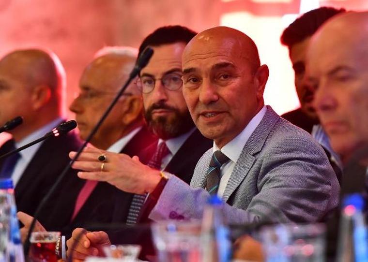 2015 Expo’dakine benzer bir heyecan taşıdığını belirten İzmir Büyükşehir Belediye Başkanı Tunç Soyer, “Temel hedefimiz İzmir’i kendi kabuğu içinde yaşayan bir kent olmaktan çıkarmak. O nedenle iki somut çalışmamız var birisi Akdeniz çanağıyla batı dünyası diğeri ipek yoluyla ulaşılan bir güzergâhın vazgeçilmez durak noktası olmak” şeklinde konuştu. Akdeniz çanağındaki ilk adımı altı kente gönderdikleri mektupla attıkları mı belirten Başkan Soyer, “Bu altı kent içinde Barselona, Marsilya, Venedik Selanik, İskenderiye ve Beyrut yer alıyor. Bu kentlerle işbirliğimizi geliştirmek istiyoruz. Önümüzdeki yıl altı günlük, altı kentin katılacağı bir fuar yapmak istiyoruz. Sırayla her birinin fuara ev sahipliği yapmasını istiyoruz. Mesela o gün fuara İspanya ev sahipliği yapıyor ise, İspanyol müzikleriyle, gastronomisiyle her şeyiyle ispanyayı göreceğiz. Bunu sadece fuara sıkıştırmayacağız ve kente yayacağız. Sporda, müzikte, gastronomide bu altı kenti bir araya getirmek ve neler yapabileceğimizi görmek istiyoruz” diye konuştu.