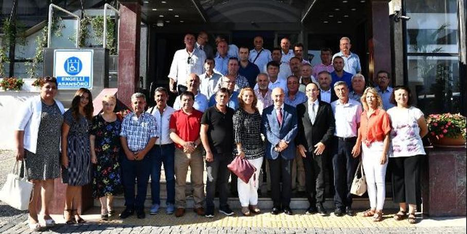 Urla Belediye Başkanı Burak Oğuz ve Urla muhtarları, İzmir Büyükşehir Belediye Başkanı Tunç Soyer'i ziyaret etti. Çetin Emeç Toplantı Salonu'nda gerçekleşen buluşmada Urla'nın 36 mahalle muhtarı, İzmir Büyükşehir Belediyesi Genel Sekreteri Dr. Buğra Gökçe ve Basın-Yayın Halkla İlişkiler Dairesi Başkanı İlker Kozan da yer aldı. 36 mahalle muhtarını ağırlayan Başkan Tunç Soyer, "Biz sizden gelen talepleri yerine getirmeye hazırız. Çok uzun bir yolumuz var bu en az 5 yıl sürecek. Çok şeffaf ve açık olacağız. Yapamadığımız şeyleri neden yapamadığımızı anlatacağız. Bu yolda beraber yol arkadaşlığı yapacağız" şeklinde konuştu.&n bsp; Başkan Tunç Soyer, "İzmir Büyükşehir Belediyesi ve İzmir'in muhtarlarının çok yakın ilişkide olmaları şart. Tam bir gönül birliği, işbirliği içinde olmaları lazım, Urla konusunda Genel Sekreterimiz Buğra Gökçe son derece deneyimli ve işine vakıf. Urla'da da Burak kardeşim olduğu için gözüm arkada değil. Sizlerle arasının iyi olması beni ayrıca mutlu etti" dedi.