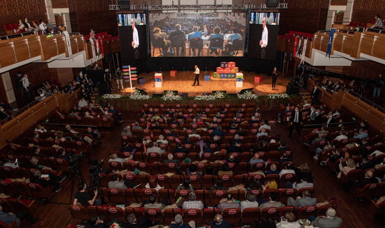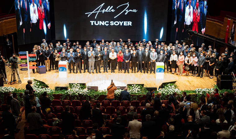 31 Mart 2019’da yapılan yerel seçimlerde yüzde 58’in üzerindeki oy oranıyla tarihi bir başarı elde eden İzmir Büyükşehir Belediye Başkanı Tunç Soyer, görevdeki ilk 550 gününün değerlendirmesini kentin farklı kesimlerinden temsilcilerin davet edildiği bir toplantıyla yaptı. Ahmed Adnan Saygun Sanat Merkezi’nde “İzmir’de Başka Bir Hayat Mümkün” başlığıyla düzenlenen toplantı pandemi önlemleri nedeniyle seyreltilmiş oturma düzeniyle yapıldı. Başkan Tunç Soyer, dokuz ana başlık altında yaptığı sunumda hayata geçirilen demokratik yerel yönetim uygulamalarını, tarımı kalkındırmaya yönelik çalışmaları, yoksulluğu ve eşitsizliği azaltmaya, istihdamı geliştirmeye yönelik sosyal projeleri, doğa dostu icraatları, ulaşım alanında atılan adımları, pandemi sürecindeki dayanışma odaklı kriz yönetim modelini, kentsel altyapı yatırımlar ını, kültür ve sanat alanındaki çalışmalarla İzmir’i dünya kenti haline getirmeyi hedefleyen atılımları anlattı.