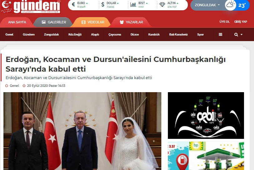 Çiftin 'külliye' ziyaretinin yandaş medya ve ajanslarda yer bulmaması ise dikkat çekti. Kocaman ve müstakbel eşinin Erdoğan'ı ziyareti, yalnızca Kocaman'ın memleketi olan Zonguldak'ın yerel internet sitelerinde haber oldu.