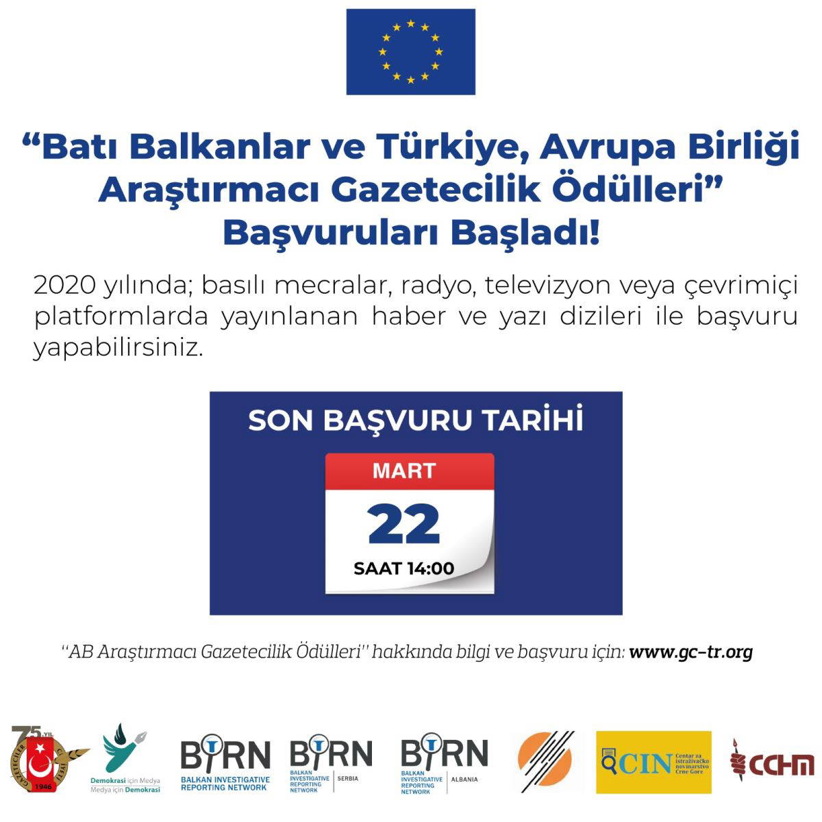 Avrupa Birliği desteğiyle Balkan Araştırmacı Gazetecilik Ağı (BIRN) ile Gazeteciler Cemiyeti’nin ortaklaşa düzenledikleri, araştırmacı gazetecilerin olağanüstü başarılarını tanıma, teşvik etme ve Batı Balkanlar ile Türkiye’de nitelikli araştırmacı gazeteciliği desteklemeyi amaçlayan ödülün başvuruları 22 Mart 2021 Pazartesi günü saat 14.00’te sona erecek.
