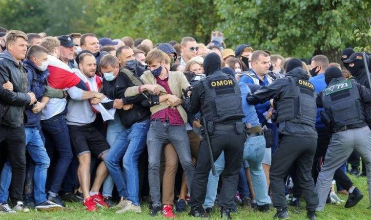 Minsk'ten gelen videolarda gösterilerin başında yüzleri maskeli güvenlik güçlerinin protestocuları gruplardan ayırarak herhangi bir işaret olmayan minibüslere bindirdikleri görülüyor.