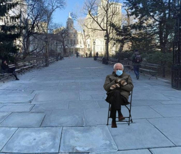 Öte yandan, tasarlanan bir internet sitesiyle Sanders’ın viral olan pozu, belirlenen adres ve konuma yerleştirildi. Sosyal medya kullanıcıları, bu uygulamayla Sanders’ın sandalyedeki pozunu dünyanın dört bir yanına, film karelerine ve fotoğraflara yerleştirdi.