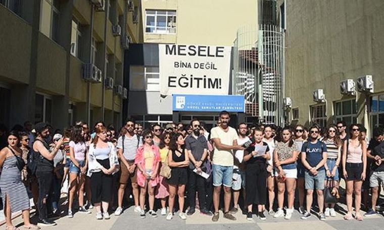 İzmir’de ‘Depreme dayanıklı olmadığı’ gerekçesi ile taşınması kararlaştırılan, Dokuz Eylül Üniversitesi (DEÜ) Güzel Sanatlar Fakültesi’nde öğrencilerin ve öğretim elemanlarının tepkisi sürerken beş akademisyen görevden alındı.