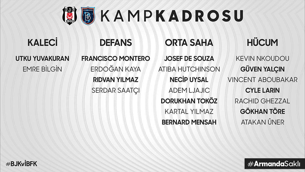 Beşiktaş’ın Başakşehir karşılaşması kadrosunda şu oyuncular bulunuyor: