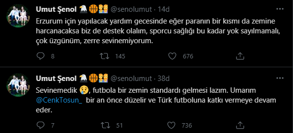 "Sevinemedik, futbola bir zemin standardı gelmesi lazım. Umarım Cenk Tosun bir an önce düzelir ve Türk futboluna katkı vermeye devam eder. Erzurum için yapılacak yardım gecesinde eğer paranın bir kısmı da zemine harcanacaksa biz de destek olalım, sporcu sağlığı bu kadar yok sayılmamalı, çok üzgünüm, zerre sevinemiyorum."