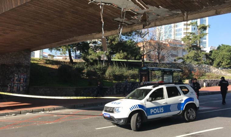 Üst geçitten kopan parçalar nedeniyle Barbaros Bulvarı’nın bir kısmı trafiğe kapatıldı. Olay yerine polis ekipleri sevk edildi.