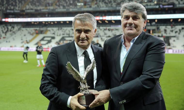Öte yandan karşılaşma öncesinde Şenol Güneş, siyah beyazlı yönetici Serdal Adalı ile birlikte sahaya çıkarak taraftarları selamladı. Daha sonra Serdal Adalı, Şenol Güneş'e üstünde kartal simgesi bulunan bir plaket takdim etti. Takdim sırasında siyah beyazlı taraftarlar, deneyimli teknik adamı alkışladı.