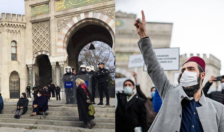 Boğaziçi Üniversitesi'ne Melih Bulu'nun rektör olarak atanmasına karşı öğrenci ve öğretim üyelerinin protestoları sürüyor. Boğaziçili öğrenci ve öğretim üyelerne diğer üniverstelerden akademisyenler de basın açıklamalarıyla destek veriyorlar. İTÜ ve Galasaray üniversitelerinin hocalarının ardından bugün de İstanbul Üniversitesi ve İstanbul Üniversitesi-Cerrahpaşa öğretim üyeleri destek açıklaması yapmak istedi. Beyazıt Meydanı'nda toplanan akademisyenlerin açıklama yapmasına polis engel oldu. Fatih Kaymakamlığı'nın eylemi yasakladığını ifade eden polisler, akademisyenlere "Slogan atmayın, açıklama yapmayın, sessizce dağılın" uyarısıda bulundu.
