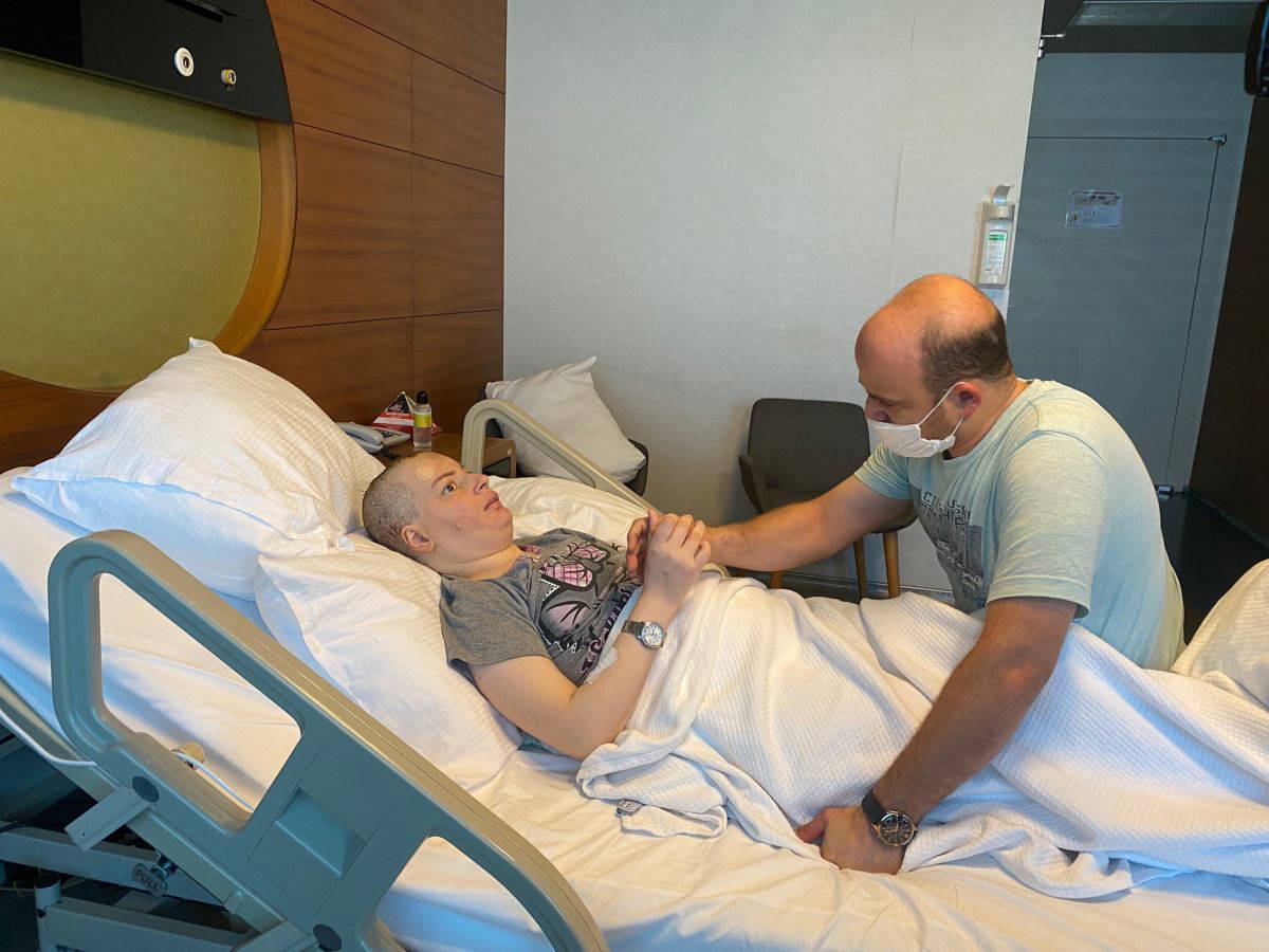O ameliyattan sonra eşimin görmesi de kaybolmaya başladı. Denge kaybı da başladı. O andan itibaren hayatı felç oldu. 10 ay önce ışın tedavisi yaptırmıştık. O zaman işitme cihazımız vardı. İyi kötü duyuyordu. Eşim kendisi özellikle büyük harflerle sırtına yazarak konuşalım dedi, iletişime başladık. Buraya getirdim, ameliyat yaptırdım.