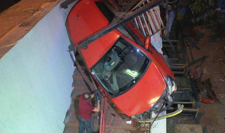 Kaza, 02.00 sıralarında Beyoğlu Refik Saydam Caddesi'nde meydana geldi. İddiaya göre, sürücüsünün direksiyon hakimiyetini kaybettiği otomobil, yol kenarında bulunan demir bariyerlere çarptı. Bariyerleri aşan otomobil, çay bahçesine düştü. İhbar üzerine olay yerine polis ve sağlık ekibi sevk edildi. Otomobilden yara almadan çıkan sürücü tedbir amacıyla hastaneye götürüldü. Hasar alan otomobil çekiciyle çay bahçesinden kaldırıldı. Otomobilin çay bahçesine girdiği anlar ise iş yerinin güvenlik kameralarına saniye saniye yansıdı. Görüntülerde, otomobil çay bahçesine inen merdivenlerden aşağıya yuvarlanıyor.