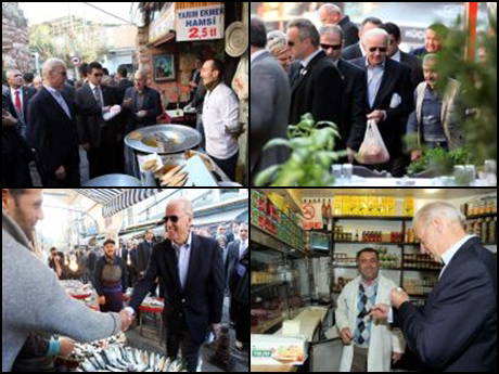 ABD Başkan Yardımcısı Joe Biden, İstanbul'un tarihi semti Fatih Samatya'da Gaziantep yöresine ait yemekler yedi ve alışveriş yaptı.