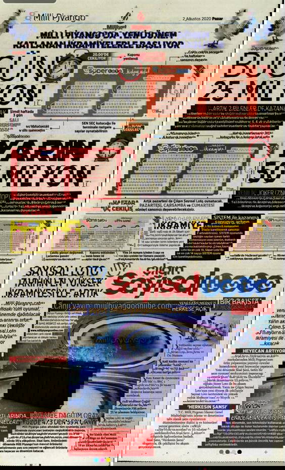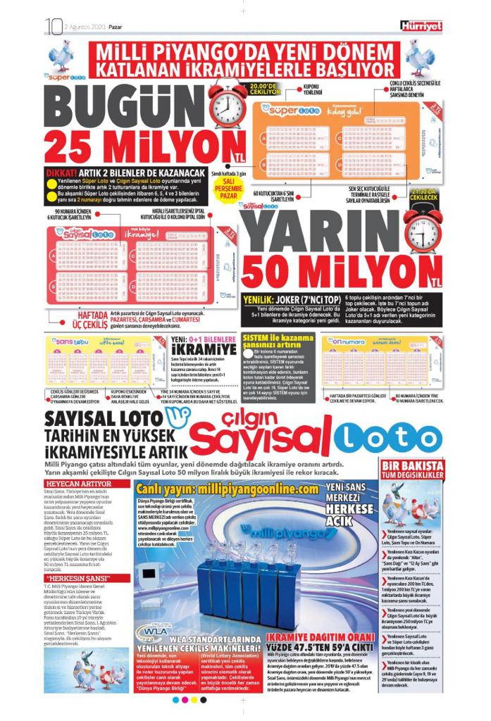 2 Ağustos’ta Hürriyet, Milliyet ve Posta’nın birinci sayfasında “Milli Piyango’da yeni dönem” başlıkları vardı.