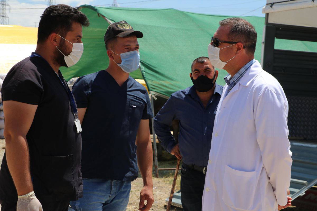 Prof. Dr. Ayaz, henüz yeni kurulan pazarda Sağlık Bakanlığı ile Tarım ve Orman Bakanlığı bilim kurullarının belirlediği tedbirler konusunda vatandaşı uyardı. Ayaz, besiciler ile kurbanlık almak için pazarı ziyaret edenlerden özellikle maske ve sosyal mesafe konusuna dikkat etmelerini, el hijyenine özel hassasiyet göstermelerini istedi. Ayaz, pazarlık yaparken temastan kaçınılmasını, tokalaşma yerine mesafeye dikkat edilerek, sopa kullanılmasını önerdi.