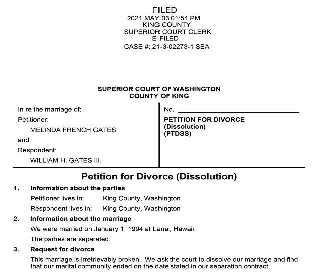 Dünyanın en pahalı boşanması olarak gösterilen olayda Bill Gates’ten ilk adım geldi. Bill Gates, eşi Melinda’ya 1.8 milyar dolarlık hisse devretti. Devir işleminin Canadian National Railway Co.’nun 1.5 milyar dolar değerindeki 14 milyon hissesini ve AutoNation’ın yaklaşık 309 milyon dolar değerindeki 2.9 milyon hissesini içerdiği ifade edildi.