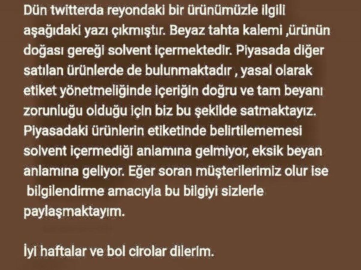 Söz konusu ürünlerin fotoğraflarını paylaşan "Denetle", “Geçen yıl tüm uyarılarımıza rağmen satışı yapılan Solvent içeren tahta kalemleri, bu yıl da okul öncesi sezonda satılıyor. Ürün üzerinde 'Çocuklara satılamaz, verilemez', 'Solvent içerir', 'Toksik etki' uyarıları yer alıyor. Buna dur diyecek var mı?” ifadelerini kullandı.