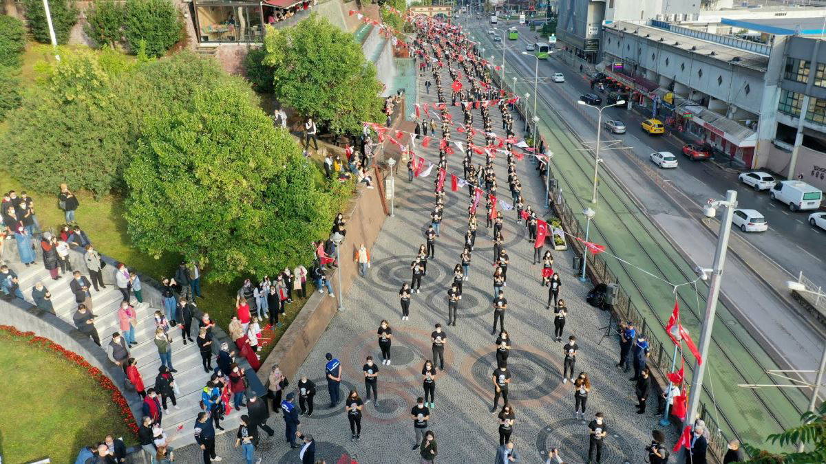 İzmit Belediyesi'nce 29 Ekim Cumhuriyet Bayramı kutlamaları kapsamında düzenlenen etkinlikte Kültür Tepesi'ndeki Atatürk Anıtı önünde toplanan bin kişi, zeybek oynadı.
