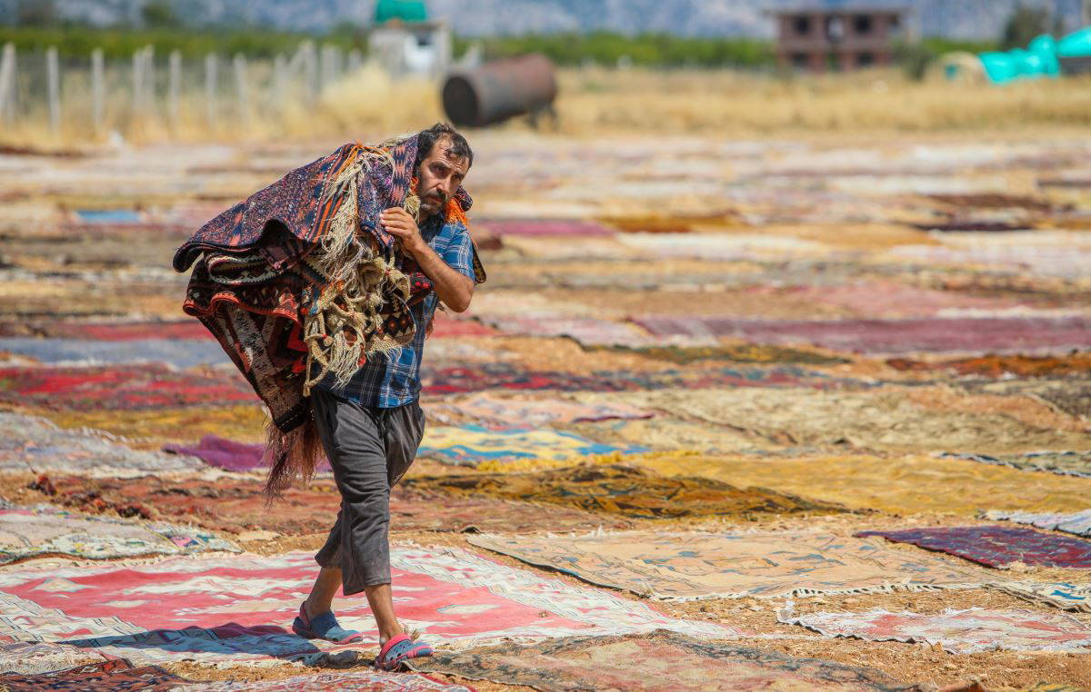 2000'li yıllara kadar ülkenin dört bir yanında o bölgelere özel halılar dokunduğunu ve halı ticareti yaptığını anlatan Börekçi, halı tarlalarında ise eski halıları temizleyip, gerçek renklerine kavuşturuyor.