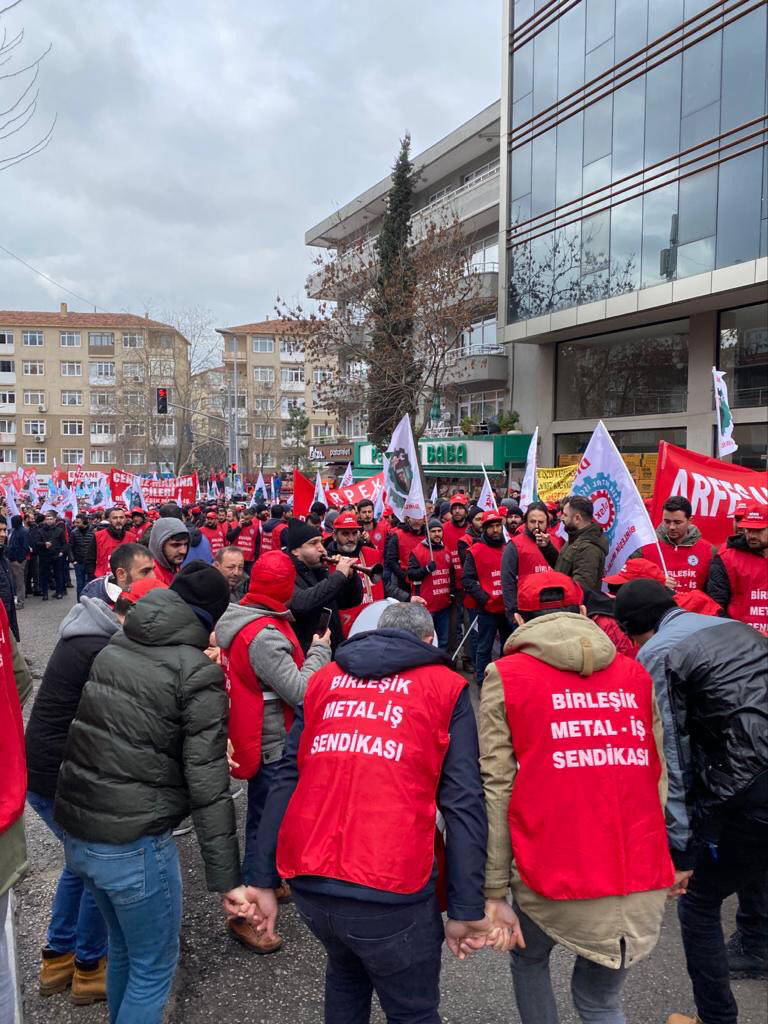 Bursa’da Türk Metal’in, Gebze’de Birleşik Metal-İş’in düzenlediği mitinglerde işçiler alanları doldurdu. Bursa'daki miting alanı, mitingin başlamasına henüz bir saat olmasına rağmen dolunca, işçiler alana sığmadığı için miting alanı genişletildi. Mitinge Türk-İş’e bağlı TÜMTİS, Kristal İş, Tek Gıda İş ve Yol İş sendikasına bağlı işçiler de katıldı. Gebze’de ise yüzde 8’lik zammı kabul etmeyeceklerini duyuran Birleşik Metal-İş’e bağlı metal işçileri sokakları doldurdu. DİSK Genel Başkanı Arzu Çerkezoğlu ve Birleşik Metal İş Sendikası Genel Başkanı Adnan Serdaroğlu’nun da bulunduğu mitingde metal işçileri ellerinde dövizlerle “İşçiler açken, patronlara huzur yok” sloganları atıyor.
