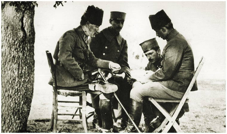 Hemen gözüme Türk’ün Ateşle İmtihanı çarptı. Halide Edip dönemin en ilginç kişiliği ve yazarı... Ankara’nın kadınları onu Hanım Paşa diye anarlardı. Bu kolejli hanımın başındaki çarşafı Türk usulü olsa da elbisesi Paris kesimiydi. Karargâhın başköşesindeydi.