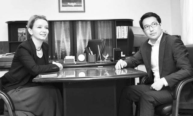 Egemen Kazakistan’ın bugünkü başkanı ise âlim ve yazar Prof. Dr. Darkhan Kydyrali. Gazetede beni; her yıl binlerce genci eğitim için farklı ülkelere gönderen Bolaşak Programı sayesinde Türkiye ve Londra’da gazetecilik okuyan muhabirler, editörleri ve gazetenin Başkan Yardımcısı Yerbolat Kamenov ağırlıyor. Gazeteyle aynı adı taşıyan caddede yükselen bina her ne kadar yeni olsa da Nazarbayev’le birlikte gazetenin 100 yıldır başkanlığını yapan isimlerin tek tek fotoğraflarının olduğu toplantı salonundaki tarihi havayı almamak mümkün değil.