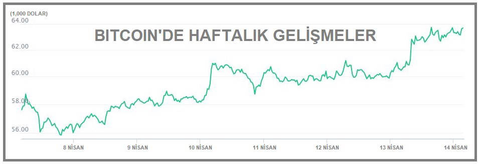Son 24 saat içinde 60,367.86 ve 63,835.01 dolar arasında dalgalanan Bitcoin yüzde 4.82 artışla 63,830.89 dolara yükselirken, birimin haftalık kazancı yüzde 10.24 olarak hesaplandı. Bitcoin'in toplam piyasa hacmi de, yaklaşık 61 milyar dolarlık artışla 1.0 trilyon 191 milyar dolar düzeyine çıktı.