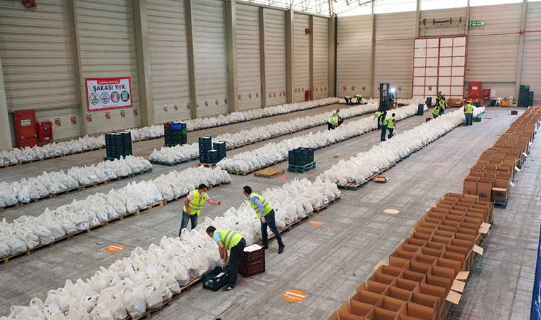 Salgın günlerinde üreticiyi de destekleyen İzmir Büyükşehir Belediyesi, kooperatiflerden aldığı 57 bin 500 adet taze enginar, 65 bin kilogram bakla, 65 bin kilogram bezelye ve 32 bin adet marulu da gıda paketlerine ekledi. Böylece hem tarım işçisi bulmakta sorun yaşayan üreticilere destek olundu hem de yurttaşlara taze sebze ve meyveyle ulaştırıldı.