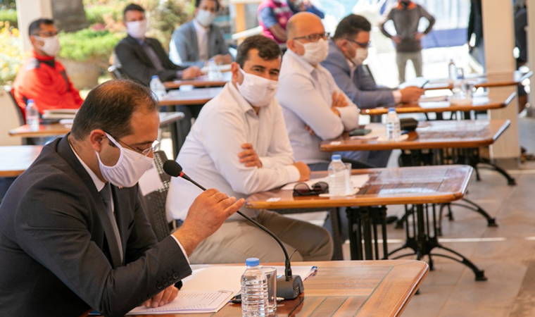 Bodrum Belediye Gıda A.Ş. Bitez Kafeterya bahçesinde düzenlenen toplantı sosyal mesafeyi koruyacak şekilde düzenlenen oturma düzeni ile Bodrum Belediye Başkanı Ahmet Aras ve meclis üyelerinin tam kadro katılımı ile gerçekleşti. Toplantı öncesi meclis üyelerine ve gazetecilere, Bodrum Belediyesi tarafından hazırlatılan Kemal Atatürk imzalı yıkanabilir koruyucu maskeler dağıtıldı.