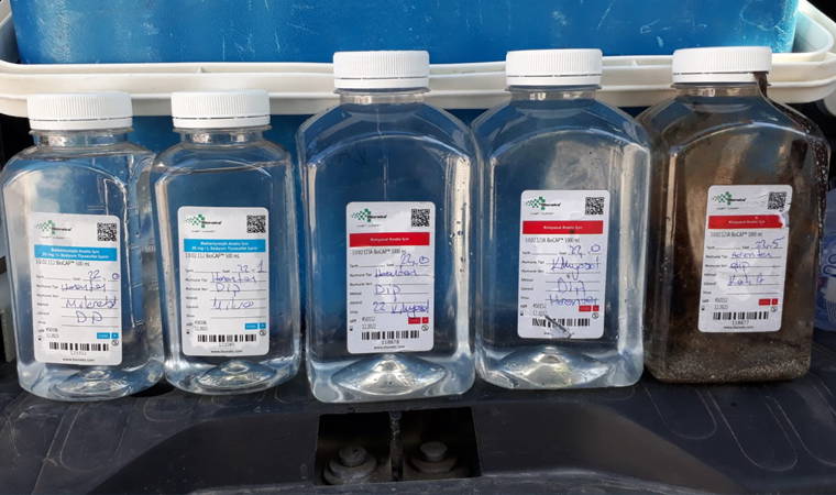 Koylara dalan ekibin, deniz dibi, orta kısım ve yüzeyden aldığı 18 litre su numunesi, kimyasal ve mikrobiyolojik analiz için Muğla Sıtkı Koçman Üniversitesi Laboratuvarına gönderildi.