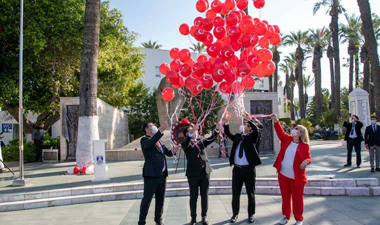 Törenin ardından Bodrum Belediye Başkanı Ahmet Aras, Belediye Başkan Yardımcısı Emel Çakaloğlu, İlçe Milli Eğitim Müdürü Aslan Korkmaz VE CHP Bodrum İlçe Başkanı Halil Karahan, üzerinde Türk Bayrakları bulunan balonları gökyüzüne bıraktı.