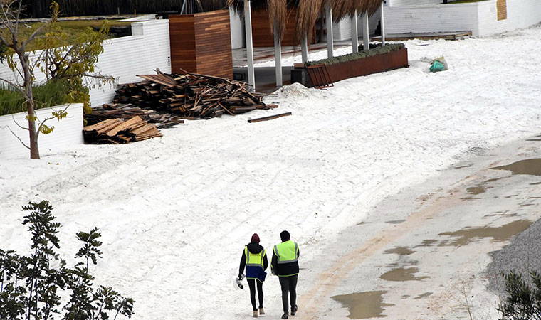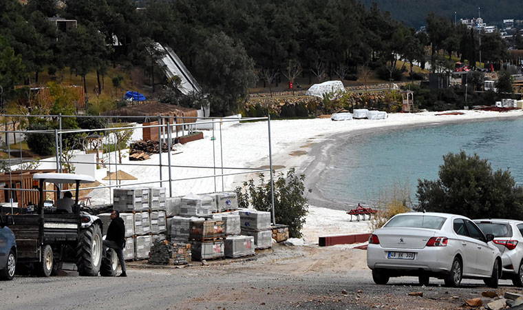 Bodrum'daki otellerde sezon hazırlığı hız kazandı. Ancak Güvercinlik ve Gölköy mahallelerindeki bazı turistik tesislerin önlerindeki plajlara, 'beyaz kum' görüntüsü vermek için kuvars tozu döküldüğü öne sürüldü.