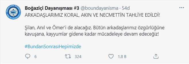"Arkadaşlarımız Koral, Akın ve Necmettin tahliye edildi!