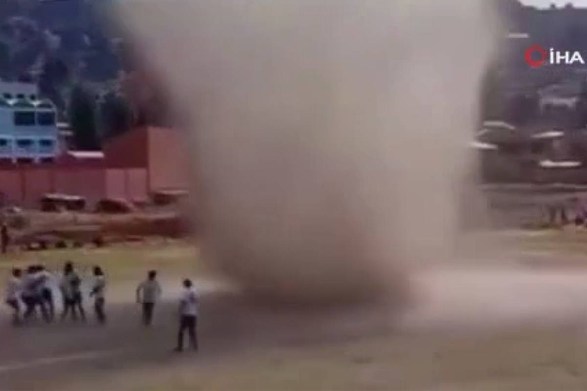 Bolivya'nın Achocalla bölgesindeki bir futbol karşılaşmasında görülen "şeytan hortumu", oyuncuları ve hakemleri korkuttu.