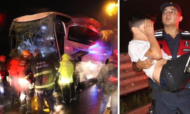 Kaza, saat 23.30 sıralarında TEM Otoyolu’nun Bolu Dağı mevkiinde meydana geldi. İstanbul’dan Diyarbakır’a giden Hilmi Gündüz idaresindeki 34 VKF 21 plakalı yolcu otobüsü, İsmail Özdemir yönetimindeki 27 GA 076 plakalı TIR’a arkadan çarptı. Kazayı görenlerin ihbarı üzerine bölgeye Bolu ve Düzce’den 112 Acil, itfaiye ve polis ekipleri sevk edildi. Kazada ilk belirlemelere göre otobüs sürücüsü ile birlikte 37 kişi yaralandı. TIR sürücüsü ise kazadan yara almadan kurtuldu.