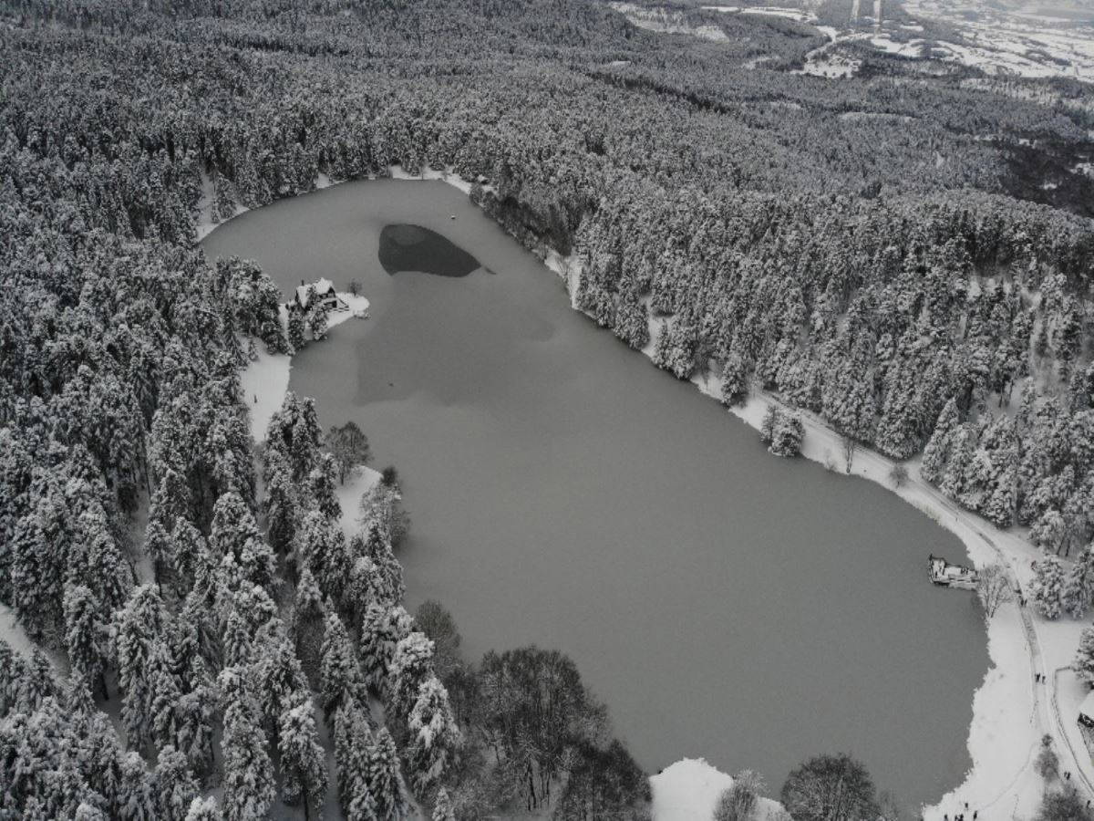 Soğuk havanın etkisinde kalan Bolu’da, göllerin yüzeyleri buzla kaplandı.