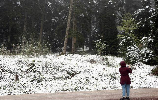 Kar yağışı bölgede aralıklarla devam ediyor. İlkbaharda yeşile bürünen orman, yer yer beyaz örtüyle kaplandı. Bolu-Seben kara yolunu kullanan bazı vatandaşlar, araçlarını yol kenarında durdurarak mayıs ayında yağan karın oluşturduğu manzaranın fotoğrafını çekti.