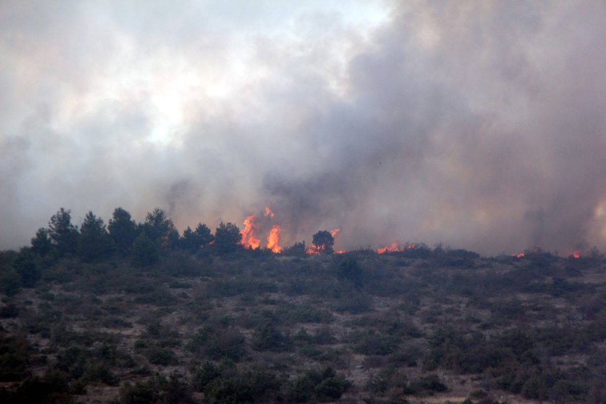 Yangına müdahale edilirken, yangının köy evlerine sıçramaması için çalışmalar sürüyor.