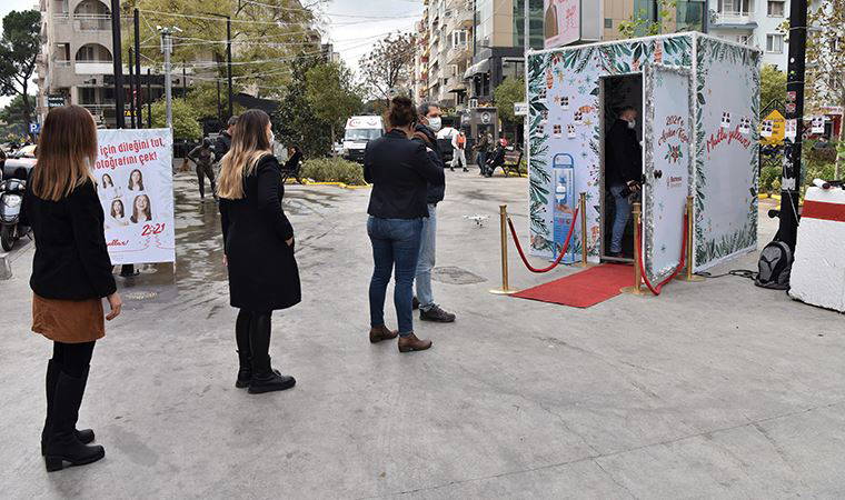Koronavirüs pandemisi nedeniyle eğlenceli organizasyonların yer almayacağı yılbaşı öncesinde, İzmir'de ilginç bir uygulama hayata geçirildi. Bornova Belediyesi, kentin en işlek noktalarından Küçükpark'a yurttaşların yeni yılda dileklerini iletebileceği özel bir kabin yerleştirdi. "2021'e Açılan Kapı" adı verilen ve hijyen kurallarına uyularak hazırlanan kabine giren yurttaşlar, yeni yılda olmasını istedikleri dilekleri sıraladı. Yurttaşlar daha sonra dilek düğmesine basıp çıkan poloroid fotoğraf ve videolarıyla bu anı ölümsüzleştirdi. Özellikle gençlerin uğrak yeri konumundaki meydanın orta yerine konulan kabin, yoğun ilgi gördü. Belediye görevlileri, kabinin içinde ve etrafında hijyen konusunda önlemler alıp yurttaşları da uyardı.
