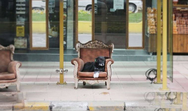Aydın'daki bir duraktaki koltuğu kendisine barınak yapan can dost sokaktan geçenleri gülümsetti.